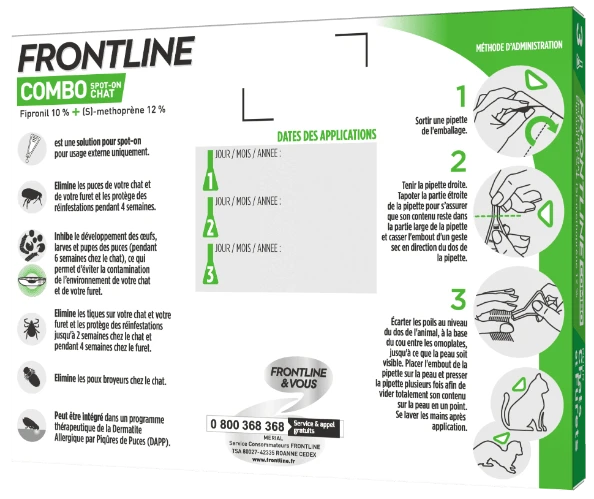 FRONTLINE Combo pour chat offre une protection anti-puces et anti-tiques complète pour votre chat et son environnement.