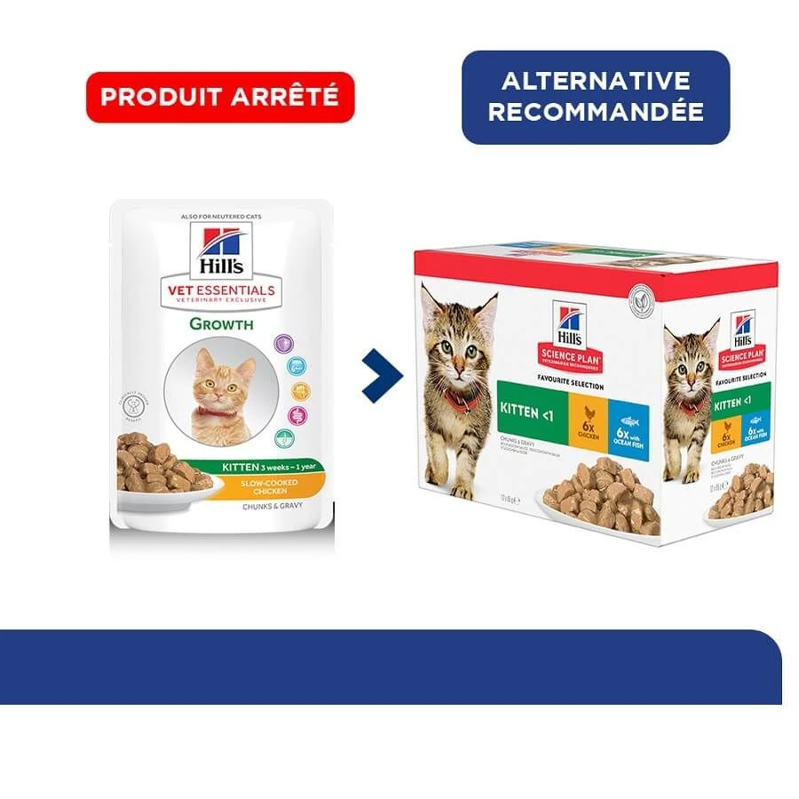 Pourquoi choisir la pâtée Hill’s Science Plan VetEssentials Kitten Growth 12 x 85g au Poulet ?